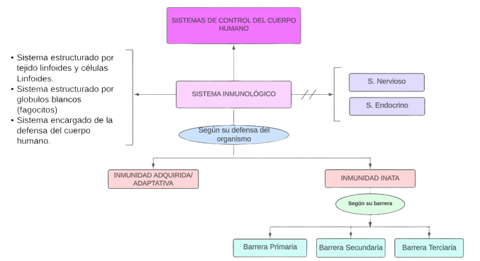 El sistema de control del cuerpo está hecho para regular todas las funciones vitales del cuerpo. La función principal del sistema inmunológico es responder de manera inmediata a los efectos de virus, bacterias o patógenos que ingresan a nuestro cuerpo, lo que estimula la producción de linfocitos como mecanismo de reacción y defensa contra los efectos de estos agentes. El sistema inmunitario se compone de glóbulos blancos, y órganos y tejidos del sistema linfático, como el timo, el bazo, las amígdalas, los ganglios linfáticos, los vasos linfáticos y la médula ósea.
