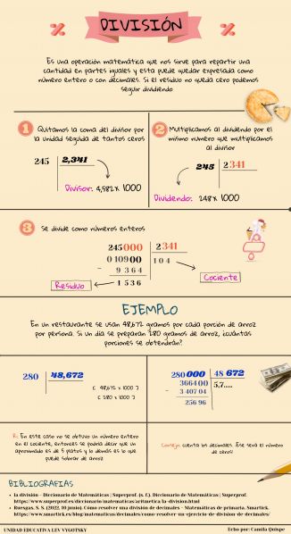 - Ruesgas, S. S. (2022, 10 junio). Cómo resolver una división de decimales - Matemáticas de primaria. Smartick. https://www.smartick.es/blog/matematicas/decimales/como-resolver-un-ejercicio-de-division-de-decimales/